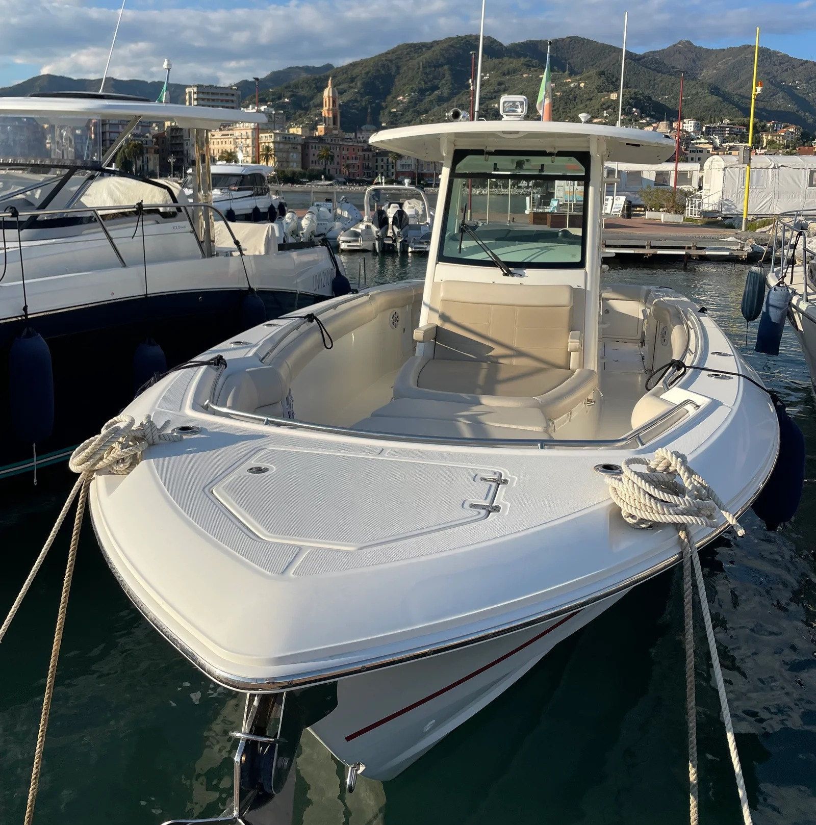 Prima acqua 2024, come nuovo. F115 con 17 ore, Raymarine Element 9, teak package, prendisole, doccia, ghiacciaia e dotazione completa